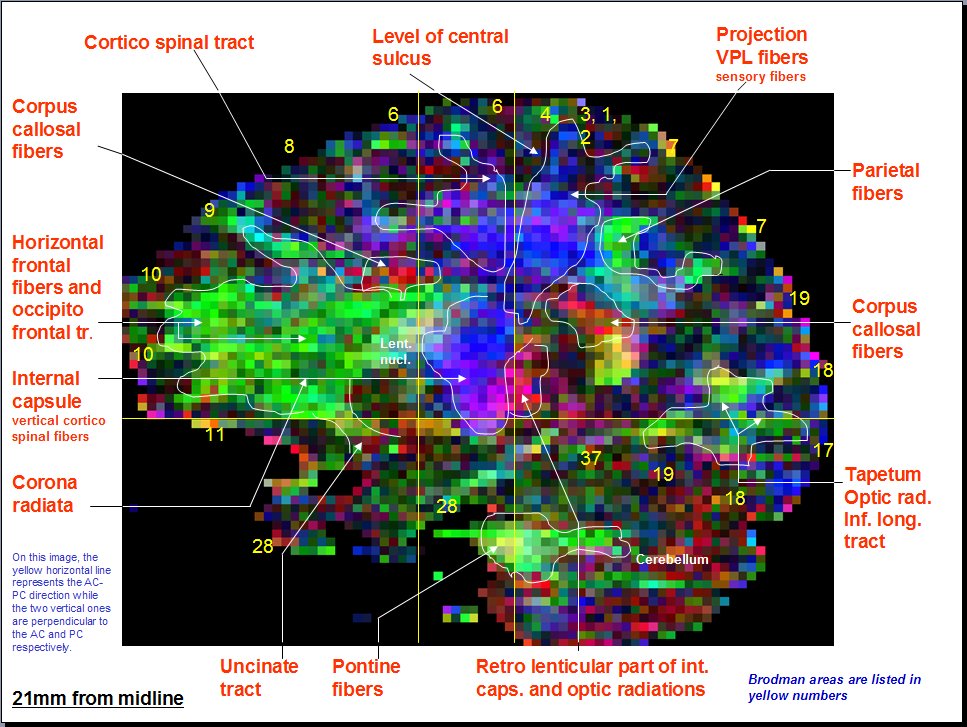 Looking At: Neuroanatomy > Diffusion Tensor Imaging > Sagittal Atlas > Slide 18